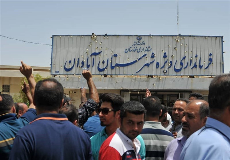 مردم شهرستان آبادان به دلیل شوری بالای آب و ادامه پیدا کردن این موضوع مقابل فرمانداری ویژه این شهر تجمع کردند.