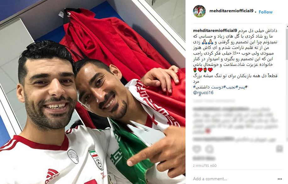 مهدی طارمی در واکنش به خداحافظی رضا قوچان نژاد در اینستاگرامش نوشت: