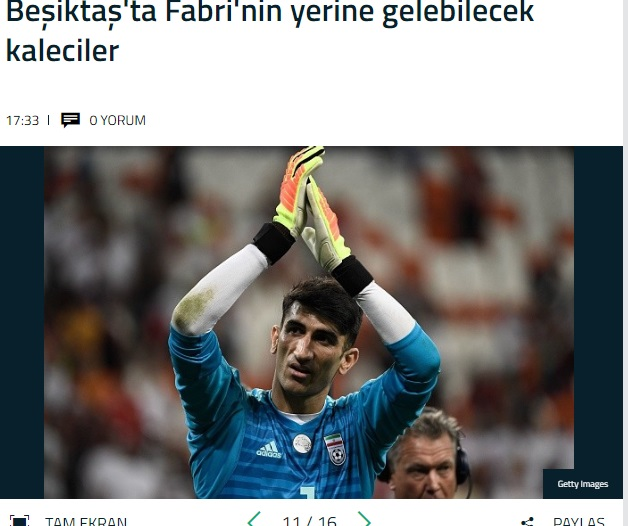 براساس خبر رسانه‌های ترکیه بشیکتاش که به دنبال جایگزین مناسب برای فابری است، قصد دارد دروزاه‌بان تیم ملی ایران در جام جهانی را که نمایش قابل قبولی در روسیه داشت را به خدمت بگیرد. البته جزو گلر پرسپولیس چند دروازه‌بان دیگر از جمله براوو و اوچوا دروازه‌بان مکزیک هم لیست خرید سیاه و سفید‌های استانبول دیده می‌شود.
