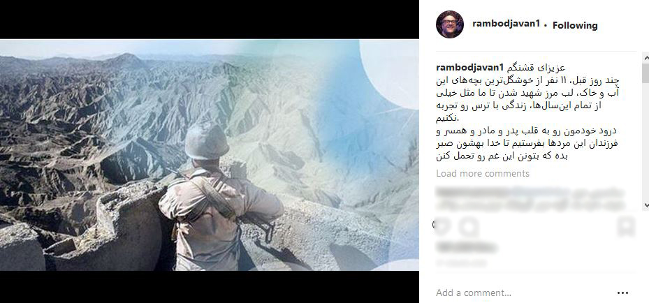 رامید جوان در آخرین پست اینستاگرامی خود برای 11 شهید درگیری مسلحانه در مرزهای مریوان (کردستان) نوشت:
