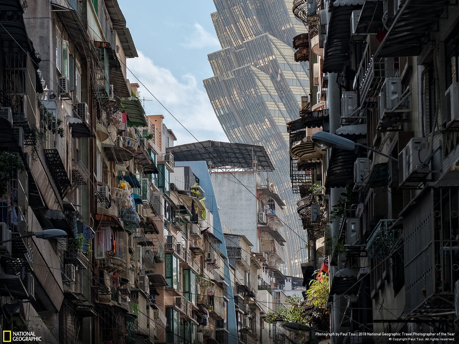 عکس منتخب نشنال جئوگرافیک عکسی است از خیابانی در ماکائو، شهری که به سرعت مدرنیزه شدن آن را فرا گرفته است.