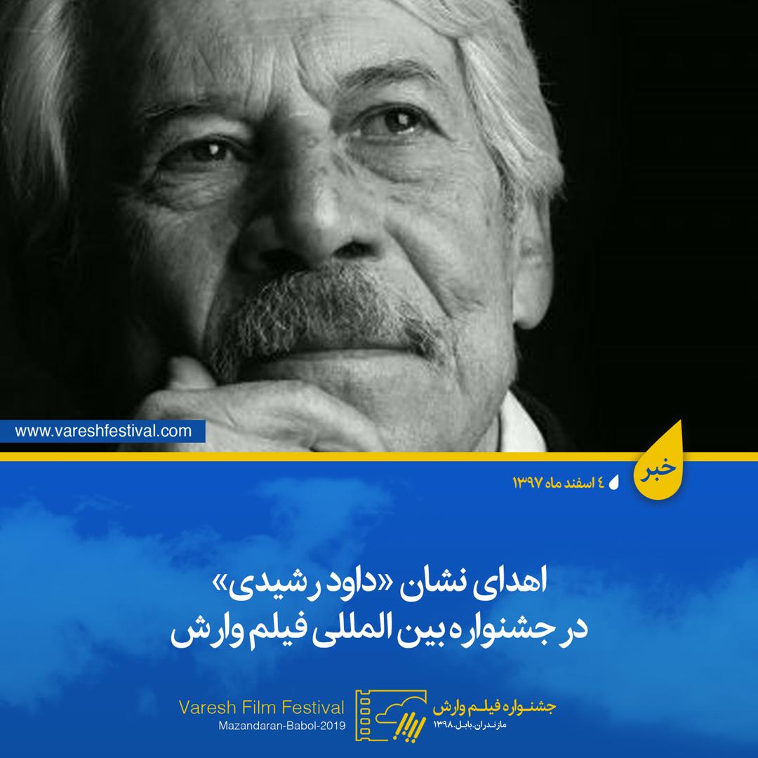 خانواده داود رشیدی همزمان با نهمین جشنواره بین المللی فیلم وارش نشان این هنرمند فقید را به هنرمندان استان مازندران اهدا میکنند.
