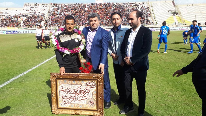 باشگاه فولاد خوزستان به همین منظور برنامه ای قبل از شروع دیدار تیم های فولاد خوزستان و استقلال تهران تدارک دید و با اهدا دسته گل و تابلو فرش از این بازیکن تجلیل کرد.