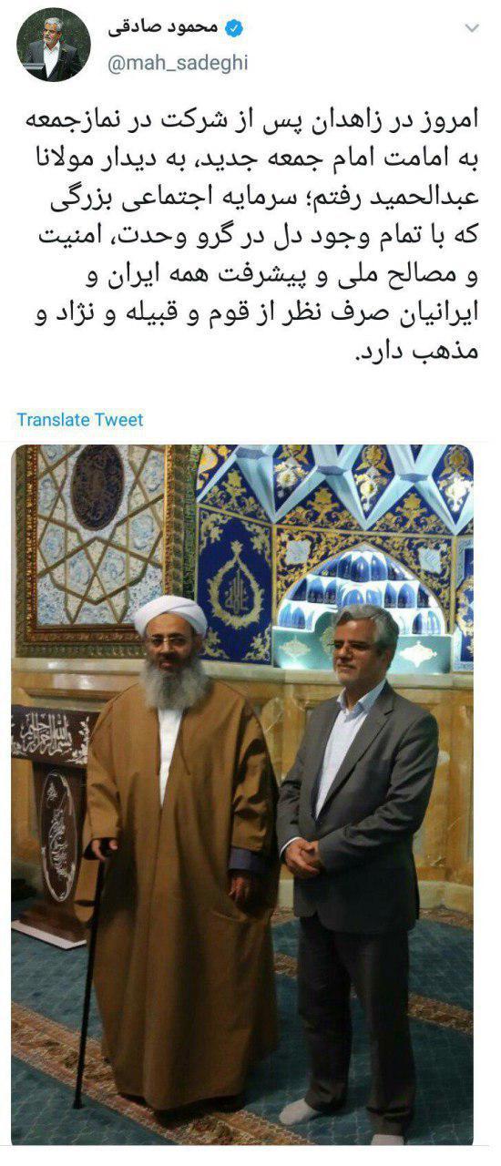 توییت محمود صادقی درباره دیدار با مولانا عبدالحمید