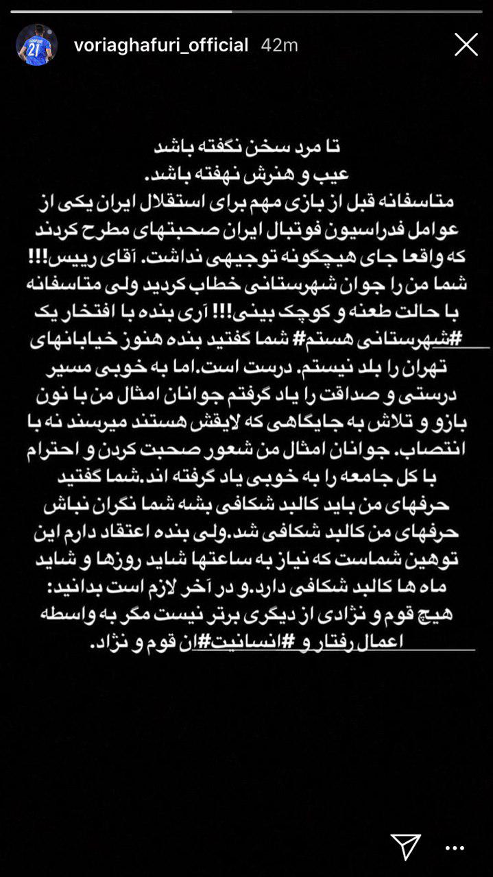 وریا غفوری در اینستاگرامش این استوری را منتشر کرد.