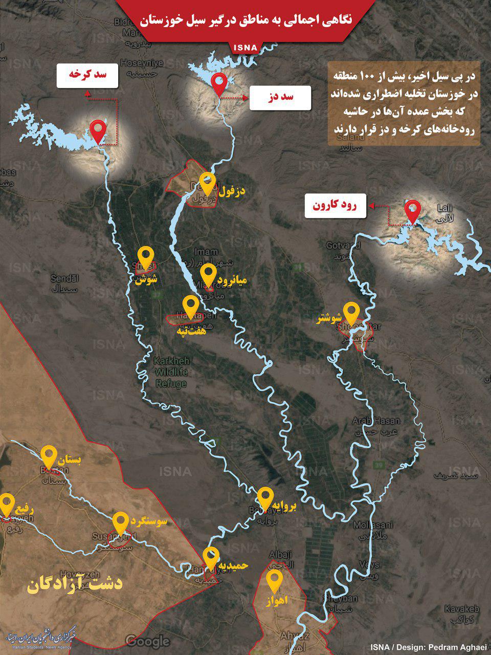 نقشه مناطق درگير سيل خوزستان (عکس)