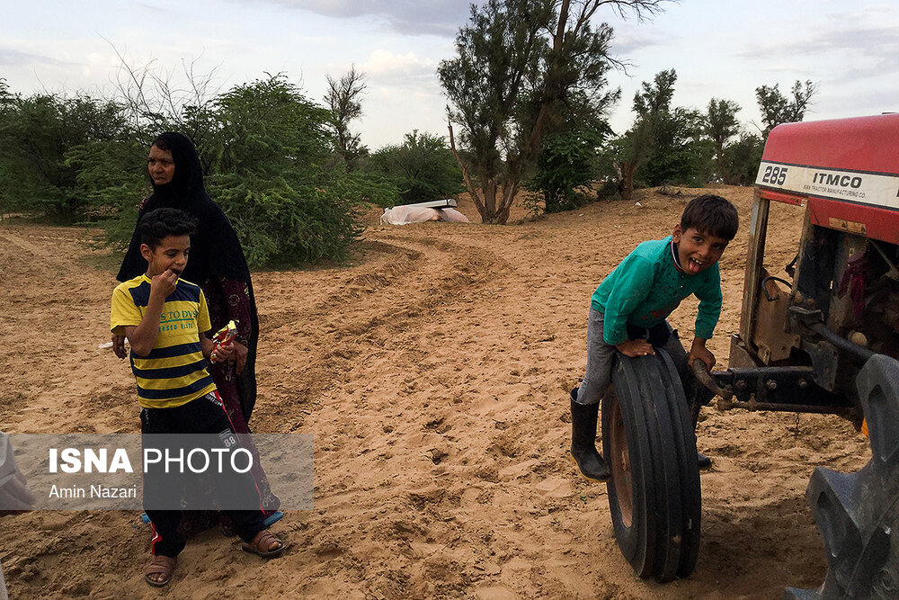 اهالی روستای «خسرج» از توابع شهرستان حمیدیه پس از گذشت سه هفته از سیل همچنان در تپه‌های شنی اطراف این روستا زندگی می‌کنند.
