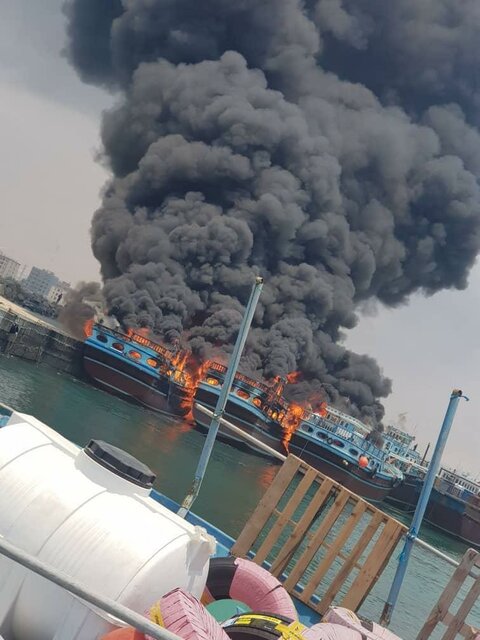 مهار آتش‌سوزی در اسکله نخل‌تقی عسلویه/ 5 شناور سوختند