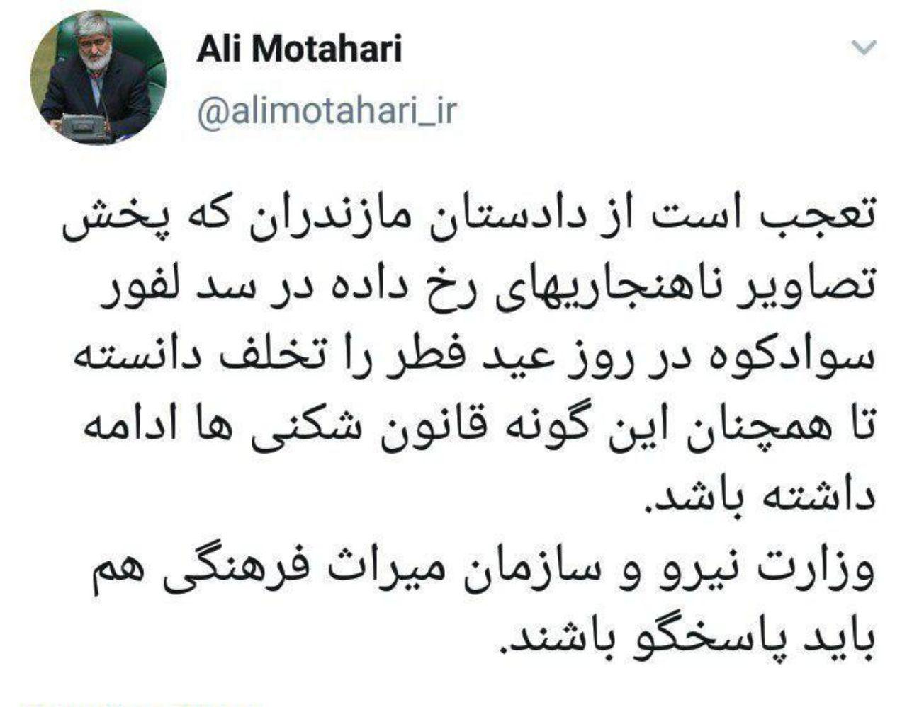 نظر علی مطهری درباره انتشار عکس گردشگران بدون حجاب در سد لفور مازندران