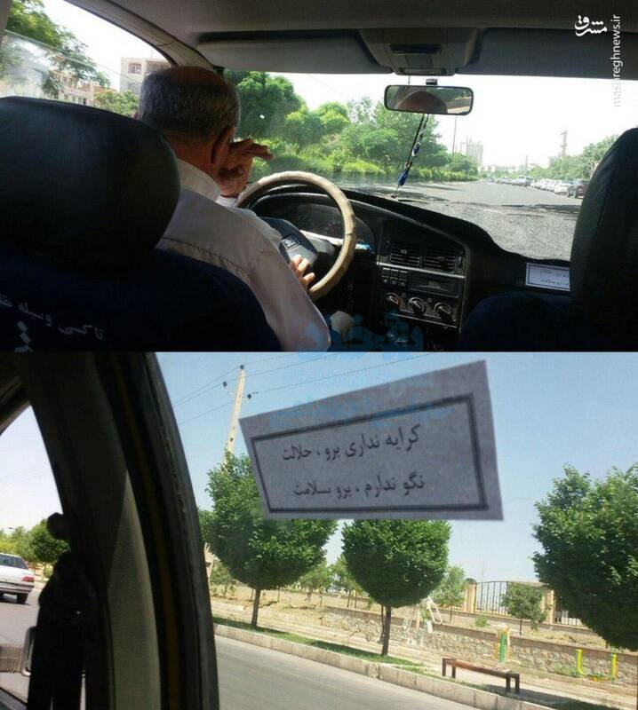 در تصویر زیر راننده تاکسی با معرفت قزوینی را میبینید که روی خودرویش نوشته: کرایه نداری برو، حلالت نگو ندارم، برو بسلامت. مرد اونه که موقع بخشش هم نخواد شرمندگی فقیر رو ببینه.