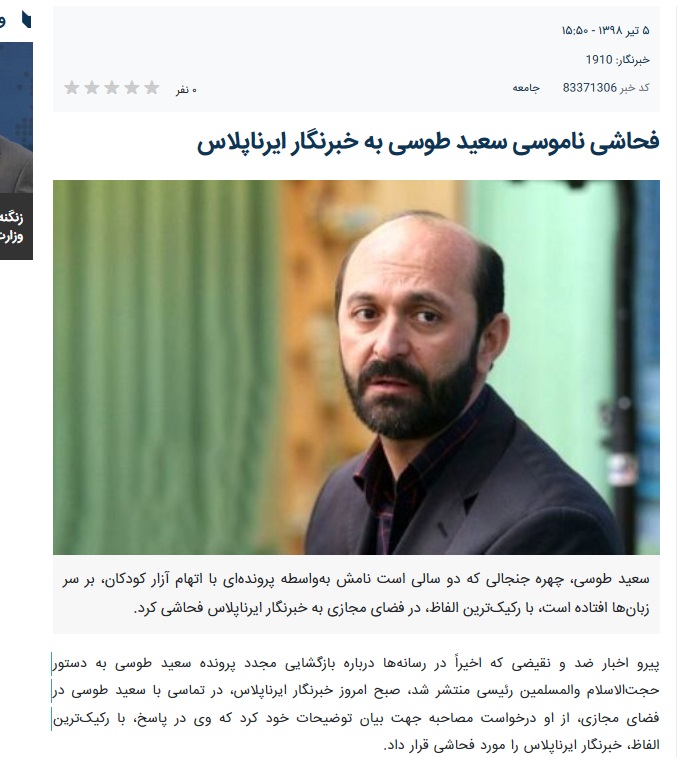 سعید طوسی، چهره جنجالی که دو سالی است نامش بهواسطه پروندهای با اتهام آزار کودکان، بر سر زبانها افتاده است، با رکیکترین الفاظ، در فضای مجازی به خبرنگار ایرناپلاس فحاشی کرد.