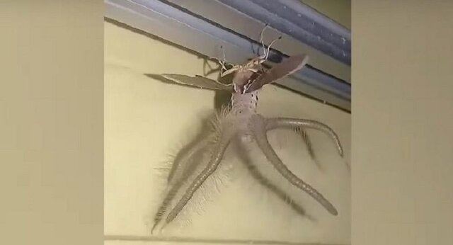 به گزارش ایسنا، در این ویدیو موجودی با اندازهای متوسط با دو بال و چهار شاخک به طولهای مختلف در حال بالا رفتن از سقف اتاق دیده میشود.