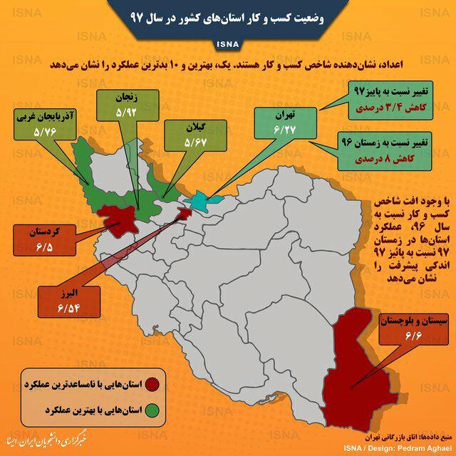 وضعیت کسب و کار استان‌های ایران در سال 97 (اینفوگرافی)