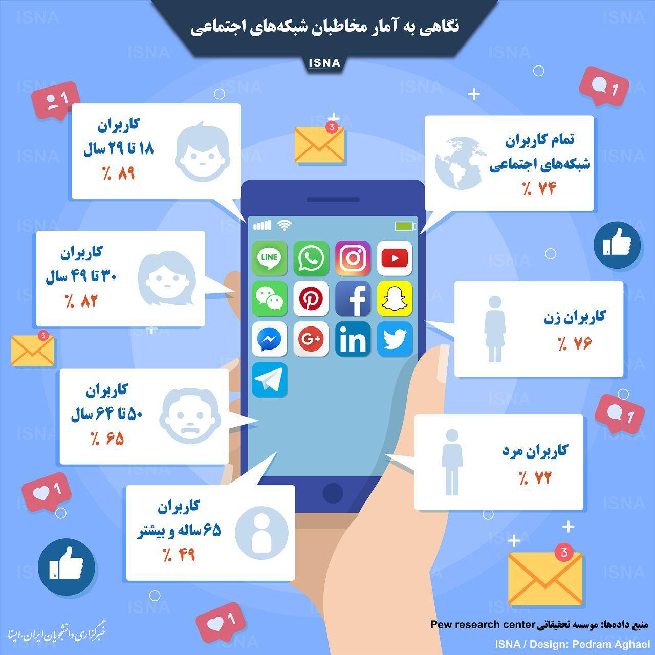 شبکههای اجتماعی که این روزها بخش قابلتوجهی از زندگی روزمره افراد را تشکیل میدهند، از سوی خیل عظیمی از کاربران مورد توجه و استقبال قرار گرفتهاند، به گونهای که بر اساس نظرسنجیهای اخیر مؤسسه تحقیقاتی «Pew research center»، تصور زندگی بدون گشت و گذار در پلتفرم شبکههای اجتماعی و فضای مجازی تقریبا غیرممکن به نظر میرسد. در این اینفوگرافی به آمار مخاطبان شبکههای اجماعی در جهان پرداخته شده است.