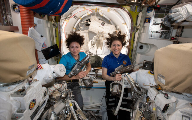 اولین پیاده روی فضایی زنانه که دفعه گذشته به دلیل نبود لباس فضایی مناسب به تعویق افتاده بود، بالاخره ساعاتی پیش توسط دو فضانورد زن و به مدت بیش از 7 ساعت برای تعویض یک باتری خورشیدی انجام شد.
