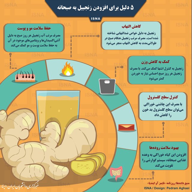 5 دلیل برای افزودن زنجبیل به صبحانه (اینفوگرافی)
