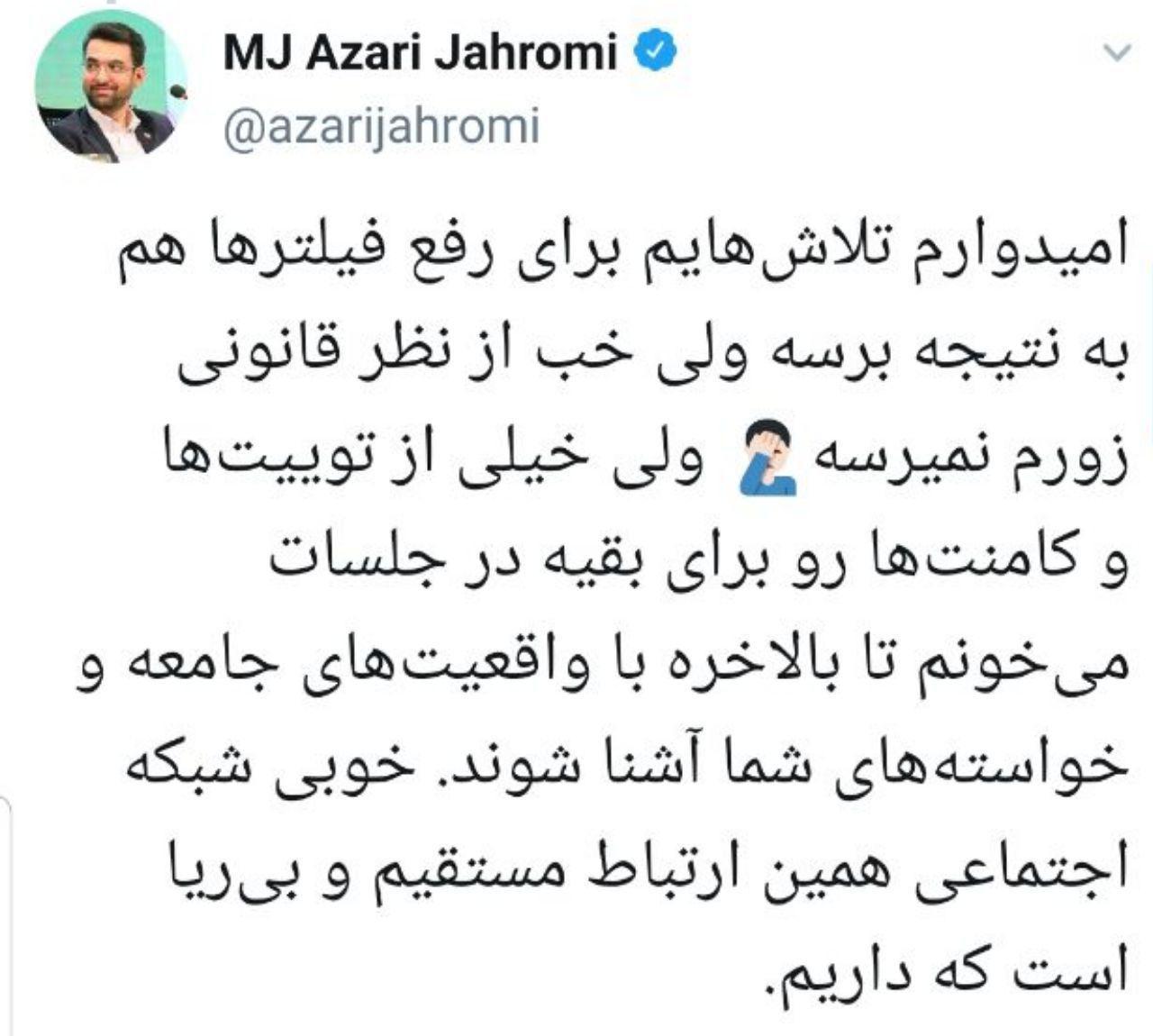 وزیر ارتباطات: زورم به رفع فیلتر نمیرسد