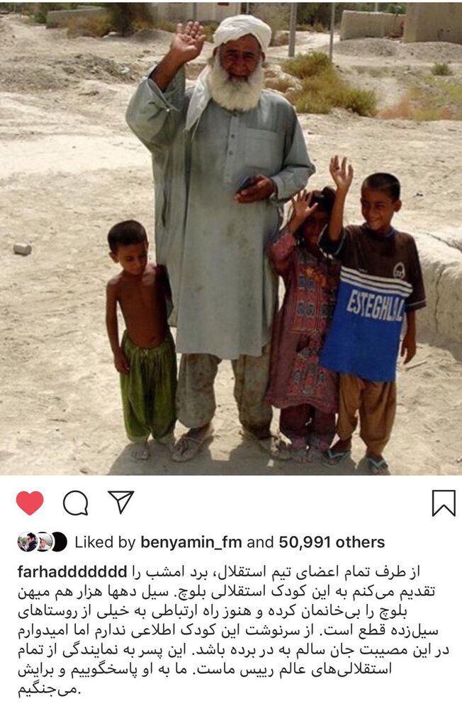 مجیدی پس از این بازی با انتشار پستی در صفحه اینستاگرامش، این برتری را به یک پسربچه استقلالی بلوچ که هماکنون درگیر سیل است تقدیم کرد.