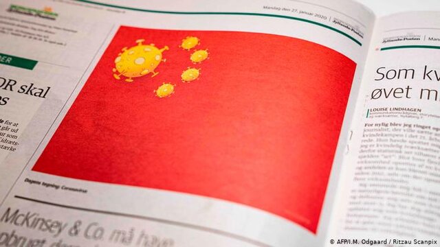 این روزنامه کاریکاتوری از پرچم چین چاپ کرده که به جای پنج ستاره، پنج ویروس کرونا بر آن نقش بسته است.