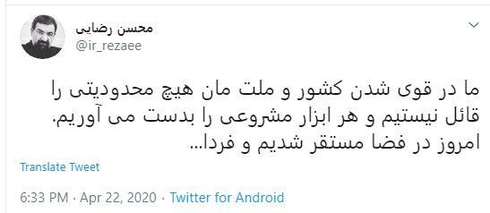 محسن رضایی خطاب به آمریکا: هیچ محدودیتی را قبول نمی‌کنیم؛ امروز در فضا مستفر شدیم و فردا...