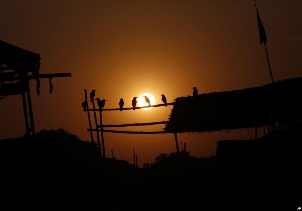 غروب آفتاب پرایاگراج هند؛ شهر تعطیل است و کلاغها به نظاره نشسته‌اند.