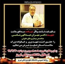 دکتر مهران عبدالهی نامی، پس از شهید دکتر میر عباس هاشمی، دومین پزشک شهید مدافع سلامت در آذربایجان شرقی است.