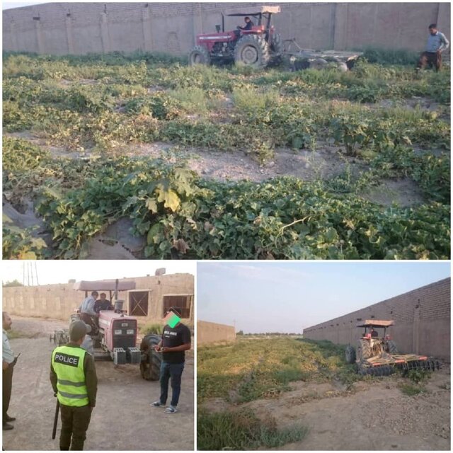 این مزرعه صیفی جات کنار تصفیه خانه قدیمی اضطراری قرار داشت که به دلیل آبیاری محصول خود با آب فاضلاب و در راستای پیشگیری از بیماری های اسهالی، تخریب و محصولات آن از گردونه مصرف خارج شد.