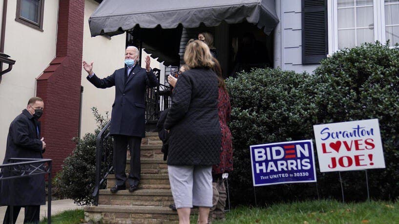 جو بایدن روز سه شنبه، در روز رای گیری در خانه‌ کودکی خود در شهر اسکرانتون، پنسیلوانیا حضور یافت.