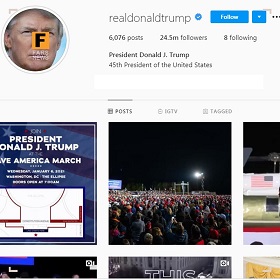 به دنبال تعلیق ترامپ از توییتر، فیسبوک نیز اعلام کرد حساب کاربری ترامپ را به دلیل نقض قوانین برای ۲۴ ساعت تعلیق می‌کند. اینستاگرام هم حساب کاربری دونالد ترامپ را برای ۲۴ ساعت مسدود کرد.