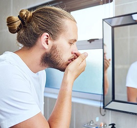 مصرف دخانیاتی مانند سیگار و قلیان میتواند سبب خشکی مخاط دهان و ایجاد بوی بد بههنگام تنفس شود.