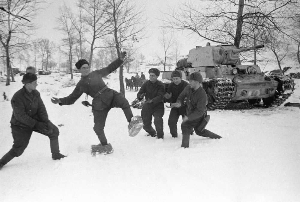 سرباز روسی در حال امتحان کفش سرباز آلمانی که به خاطر سرما درست کرده بود - استالینگراد سال ۱۹۴۳ / عکس: اسپوتنیک