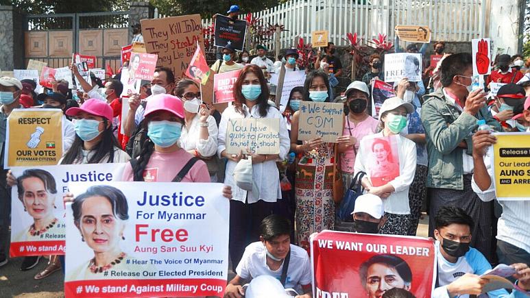 به گزارش عصرایران به نقل از یورونیوز، گروهی از مخالفان کودتای نظامیان علیه دولت تحت رهبری آنگ سان سوچی روز شنبه برای چندمین روز پیاپی در یانگون راهپیمایی کردند. شرکت کنندگان در این تظاهرات در حالی به خیابان های یانگون رفتند که که تجمع های پنج نفره یا بیشتر ممنوع اعلام شده است.