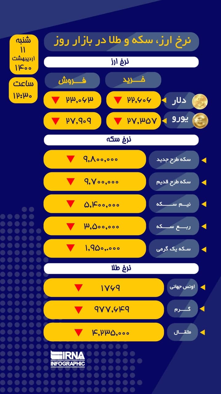نرخ ارز، سکه و طلا در بازار امروز ۱۱ اردیبهشت