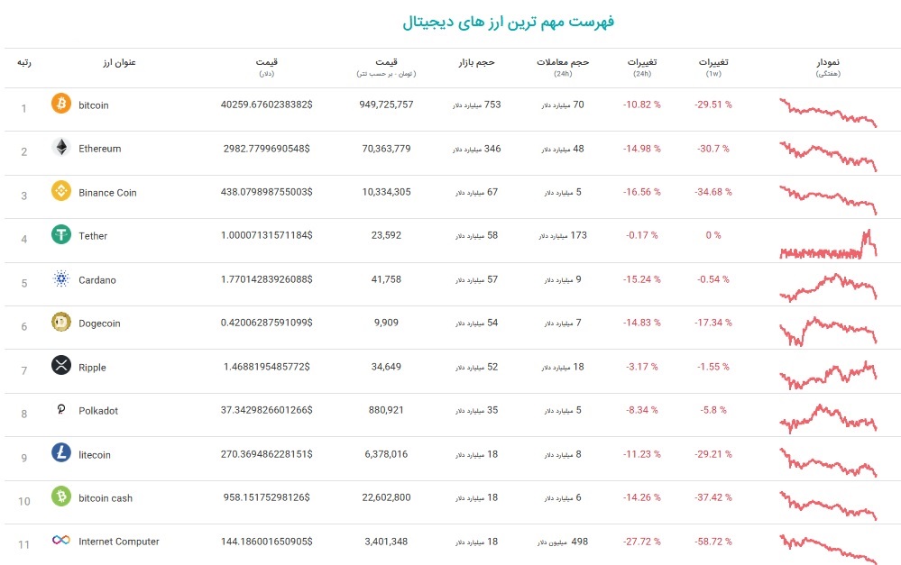 با سقوط قیمت ارزهای دیجیتال ، بازار به رنگ سرخ درآمده است./ منبع: آسان بیت کوین