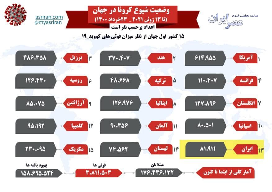 وضعیت شیوع کرونا در جهان یکشنبه ۲۳ خرداد (اینفوگرافیک)