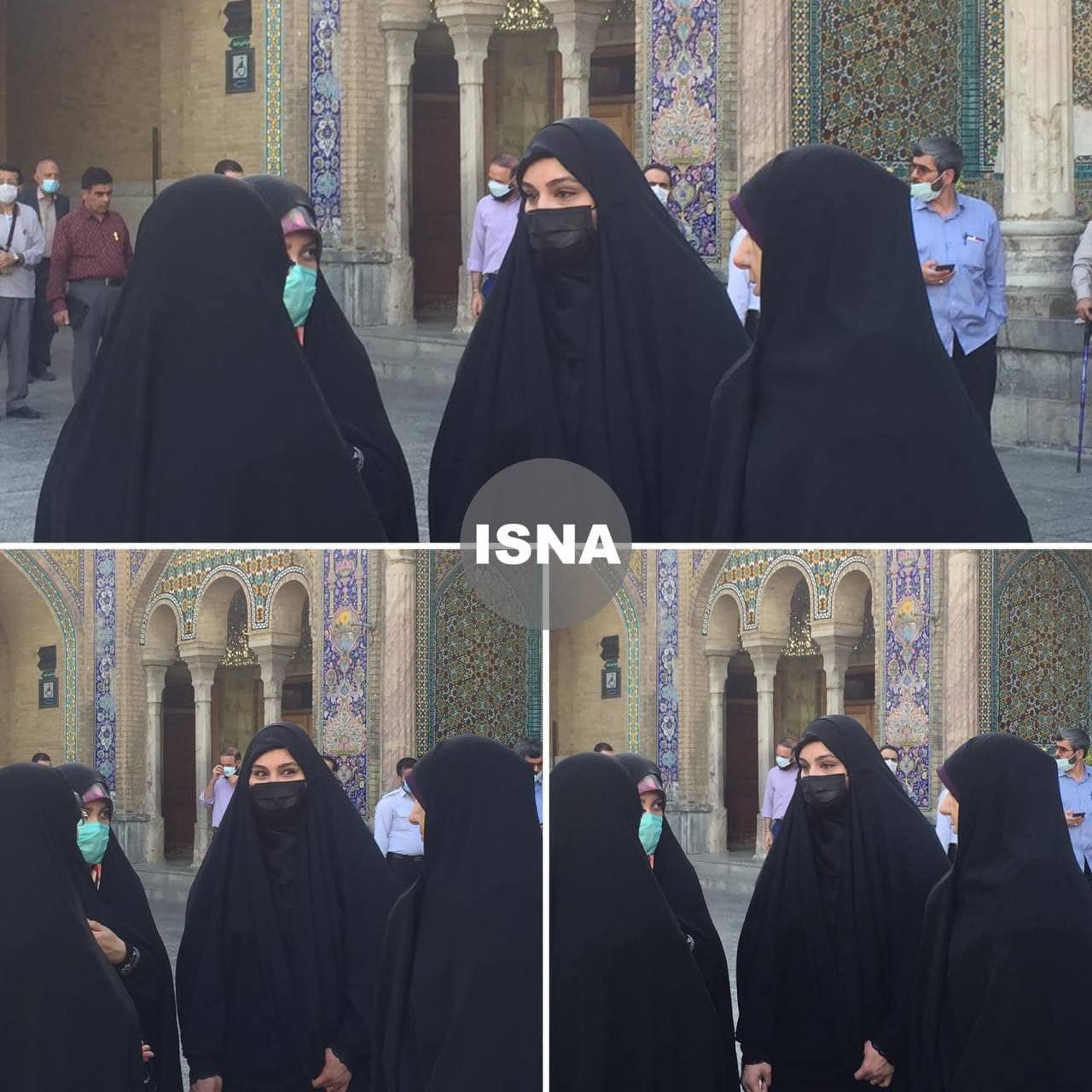 حضور «نرجس سلیمانی» دختر شهید سلیمانی و کاندیدای شورای شهر تهران در حرم شاه عبدالعظیم . شهر ری