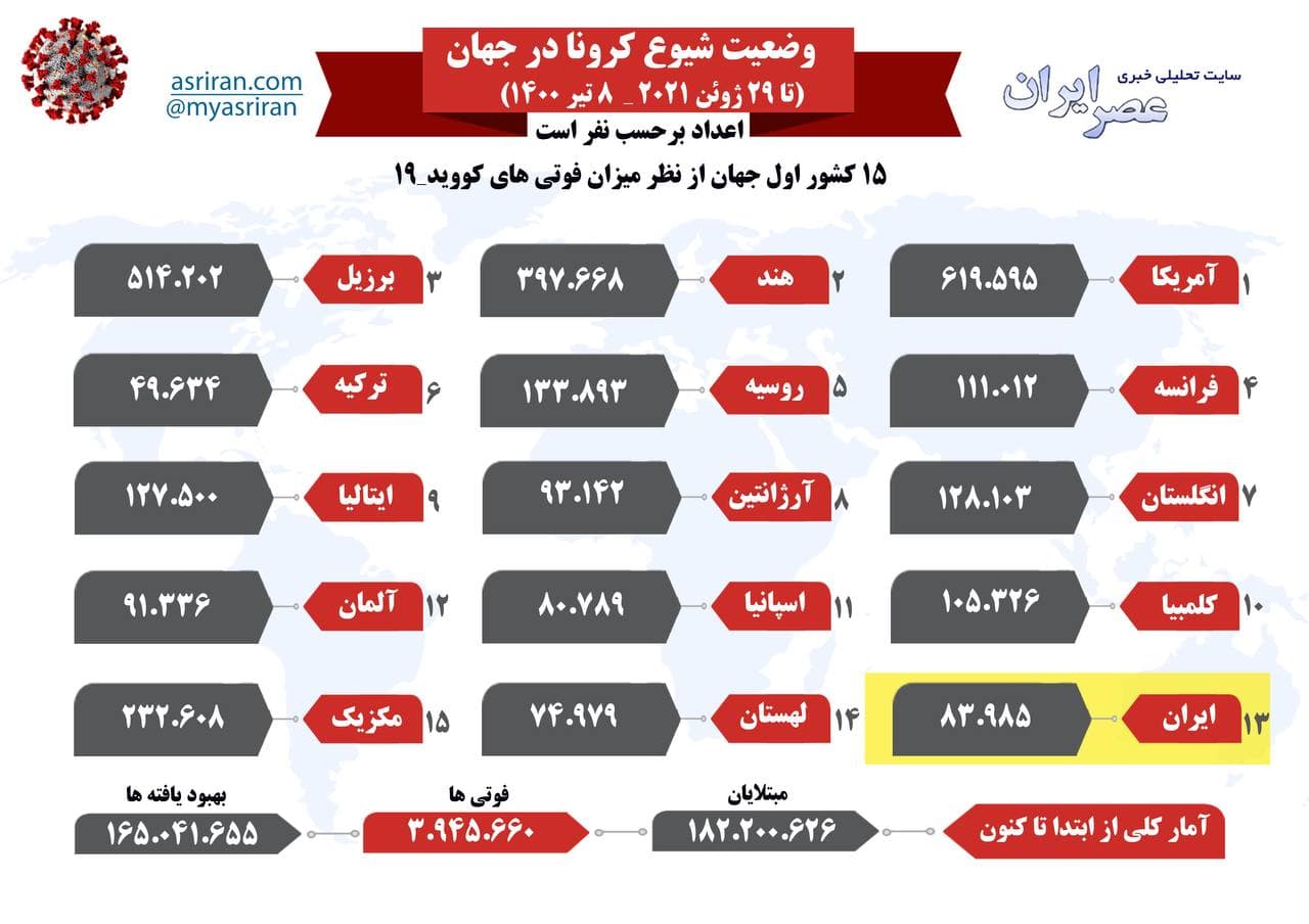 وضعیت شیوع کرونا در جهان، سه‌شنبه ۸ تیر (اینفوگرافیک)
