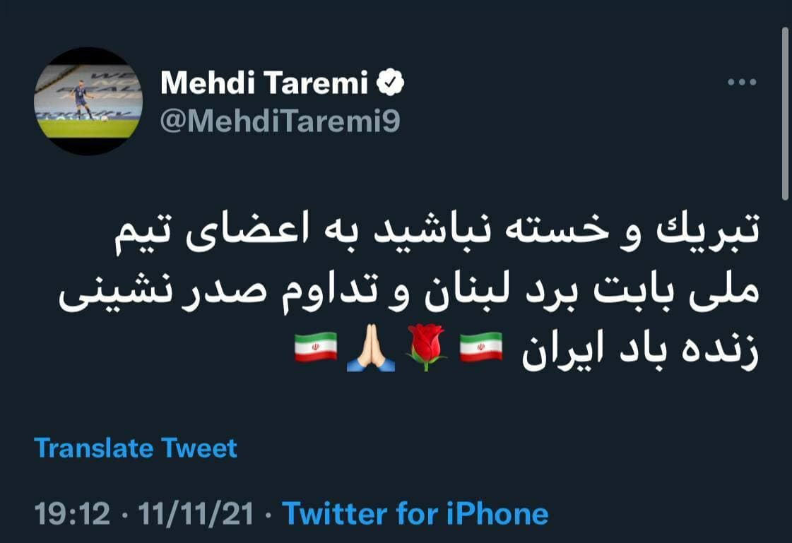 واکنش طارمی به پیروزی تیم ملی مقابل لبنان